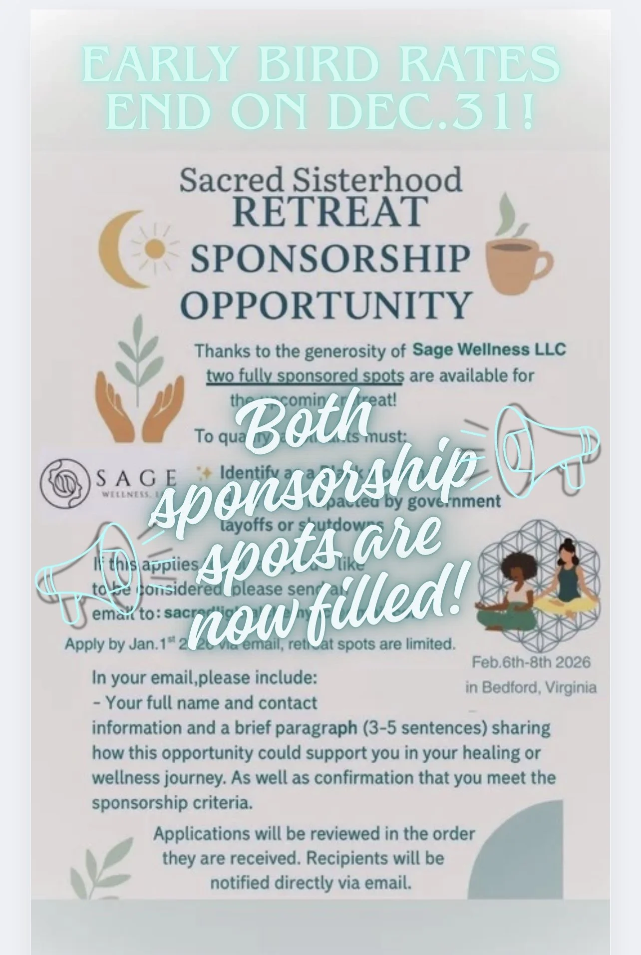 Thanks to the generosity of Sage Wellness LLC, 2 fully paid tickets for black women impacted by the government shutdown/ layoffs have been offered and filled.
